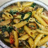 Penne with chicken breast, sun-dried tomatoes, spinach, mushrooms & garlic in our marsala wine sauce.